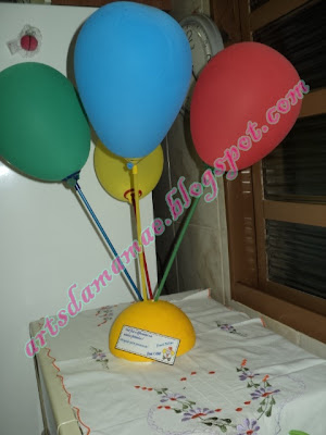 Bom, como o tempo estava muito curto para conseguir outro centro de mesa, resolvemos fazer este ! E todos adoraram. É um centro de mesa ao mesmo tempo simples e alegre, bem colorido!